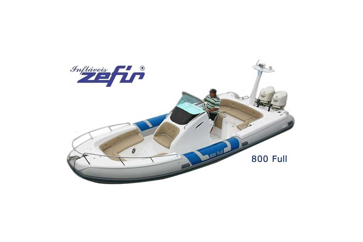 A embarcação inflável de alto padrão que você procurava. O 800 Full é o inflável mais luxuoso do mercado, garantindo mais espaço, velocidade, conforto, modernidade e segurança. Possui um acabamento impecável em todo o inflável e seus acessórios, no console a meia nau com comando de TOP e capota embutida no deck na parte da popa.