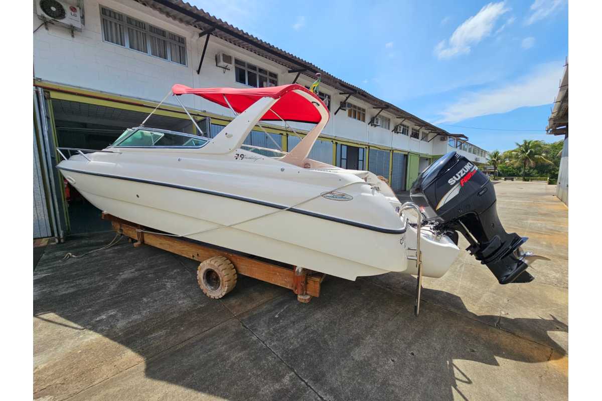 Lancha HD 7.9 26 pés cabinada, casco ano 2004 montada com Motor Suzuki 250 hp 4 tempos e 460 horas de uso.Acessórios:Âncora com CaboDestinatário: :