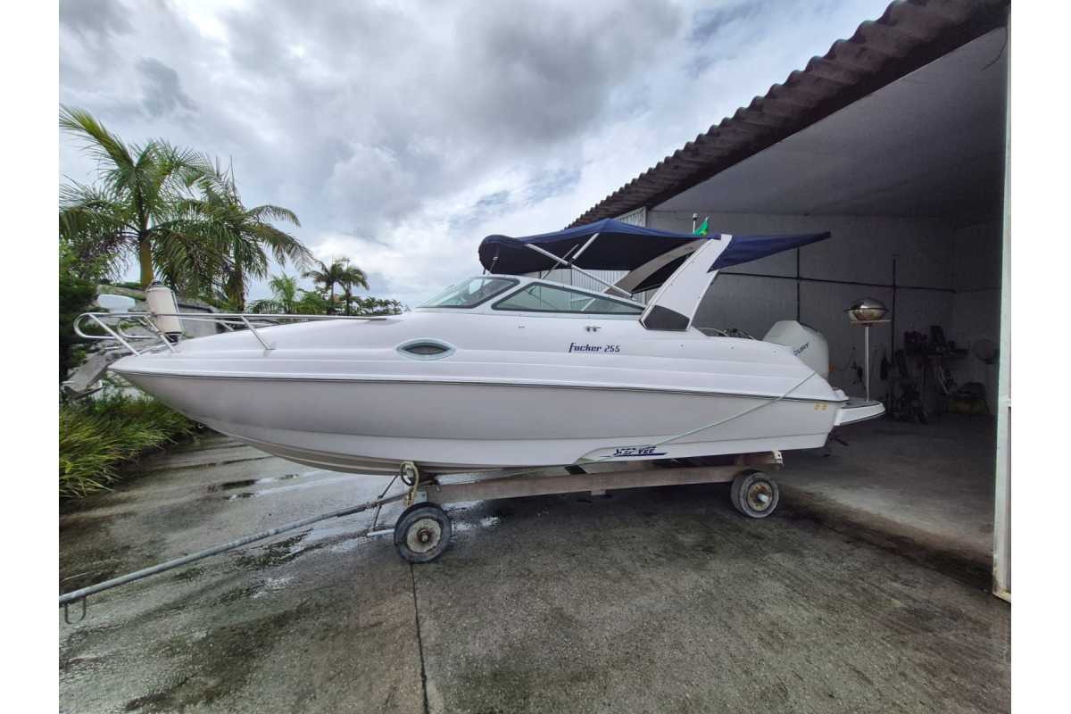 Lancha Focker 255 (Cabinada), casco ano 2008com Motor Mercury 250 Hp, 4.6L V8 com comando DTS135 horas de uso, ano 2019.Conjunto completo com: 02 BateriasDestinatário: :