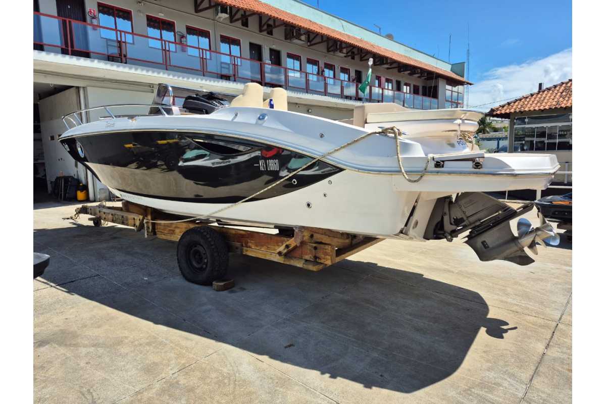 Lancha Sessa 28 modelo Key Largo Cabinada, ano 2019montada com Motor Volvo Penta 5.7L V8 300 HP Gasolinacom Rabeta Duo Prop e 134 horas de uso:02 BateriasBomba de Porão com automáticoCarreta de Encalhe em MadeiraChicote ElétricoChave GeralDireção HidráulicaGeladeira 12V aço inoxGPSMIcroondasPiso em Teka natural na plataformaRádio VHFRelógios do PainelSanitárioSomToldo em AlumínioVolanteDestinatário: :
